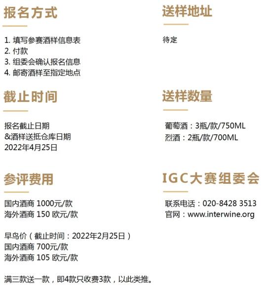 ·每款IGC獲獎酒款將被授予IGC評委團隊認證的獲獎證書及獎標;