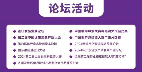 2024中食展?廣州(Food2China Expo)展會同期將舉辦進口食品發(fā)展論壇、第二屆中國設(shè)施果蔬產(chǎn)業(yè)大會、現(xiàn)代化海洋牧場發(fā)展論壇等30余場論壇、賽事及活動,組委會將積極組織更多高水平、多元化的交流會議,邀請行業(yè)專家、學(xué)者和企業(yè)代表齊聚一堂,多維度出發(fā)與食品行業(yè)同仁共話新發(fā)展、新機遇,為食品行業(yè)帶來更具國際視野及適應(yīng)本土化發(fā)展的新思路,共享全球前沿技術(shù)和產(chǎn)業(yè)發(fā)展趨勢。