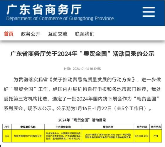 2024年1月,廣東省商務(wù)廳發(fā)布“粵貿(mào)全國”活動目錄,中食展?項目在列!“粵貿(mào)全國”品牌工程是廣東省自2021年啟動的以拓展國內(nèi)市場、實現(xiàn)國內(nèi)國外市場戰(zhàn)略銜接、生產(chǎn)貿(mào)易互利雙強的一個重要戰(zhàn)略抓手。連續(xù)2年成功入選,是對中食展?(廣州)FOOD2CHINA EXPO在行業(yè)內(nèi)的地位和影響力的充分肯定!