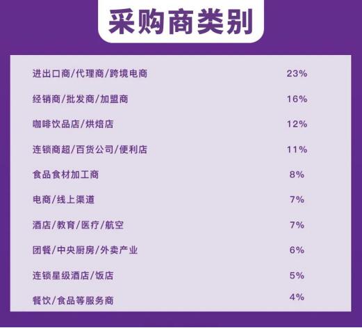 基于多年扎根行業(yè)的資源積累,主辦方擁有30萬+的龐大行業(yè)數(shù)據(jù)庫,展會匯聚全國各地進口商、經(jīng)銷商、連鎖商超、餐飲及酒店、食品批發(fā)市場等采購商。通過多場商務(wù)配對會和品牌推介會,最大化參展商利益,構(gòu)建全年候供需精準對接橋梁。