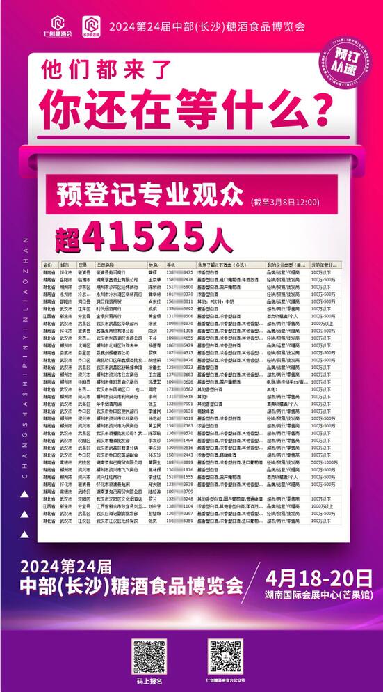 截止4月7日中午12:00,線上報名參加2024中部(長沙)糖酒會的專業(yè)觀眾數(shù)量已突破