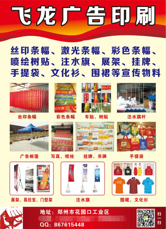 絲印條幅,激光條幅,彩色條幅,噴繪樹貼,注水旗,展架,掛牌,手提袋,文化衫,圍裙等宣傳物料